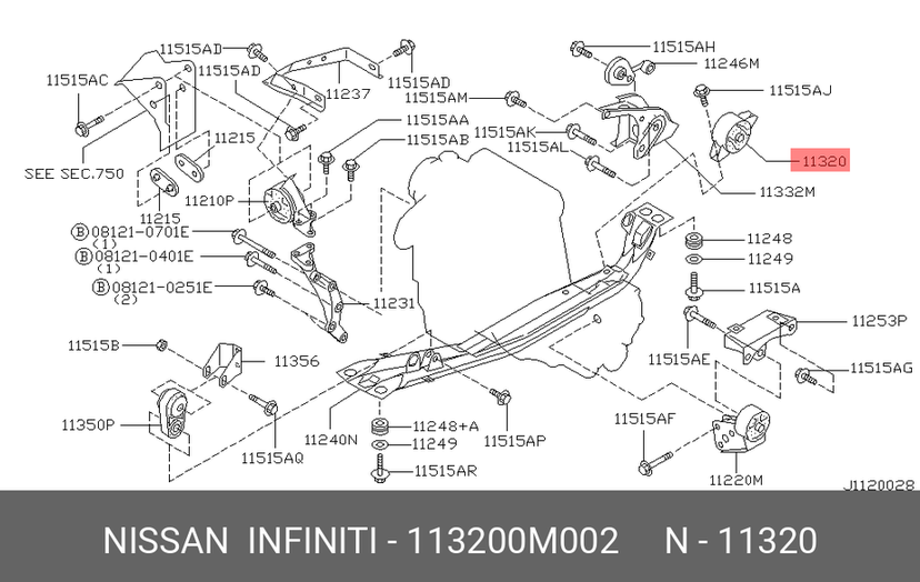 RBI ENGINE MOUNTING REAR,11320-59Y00-IN M/T B13,14 RBI
