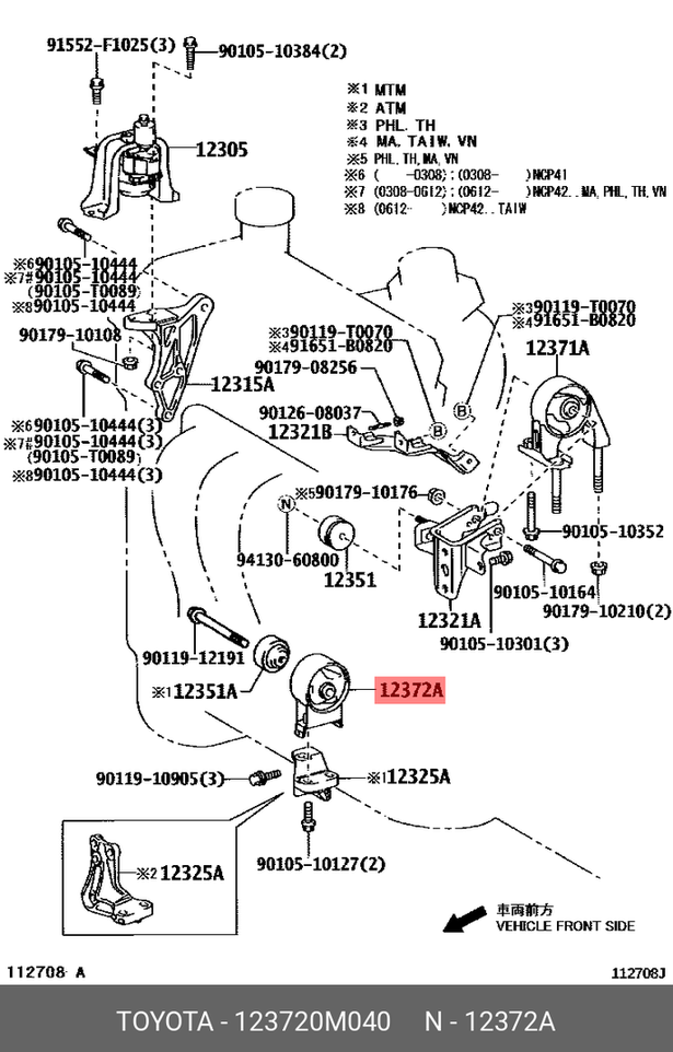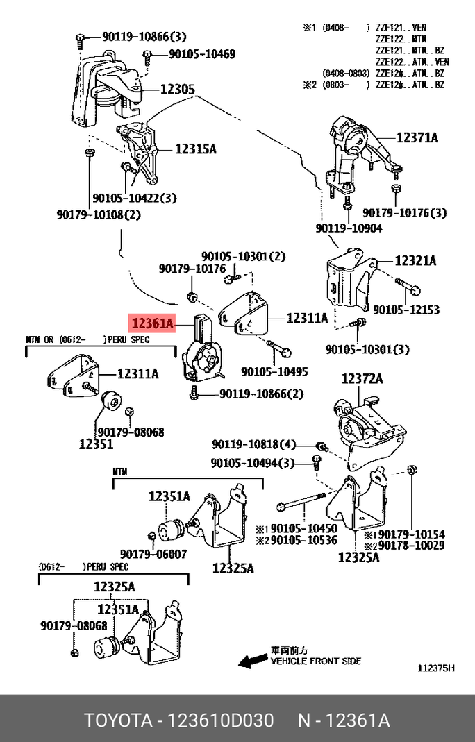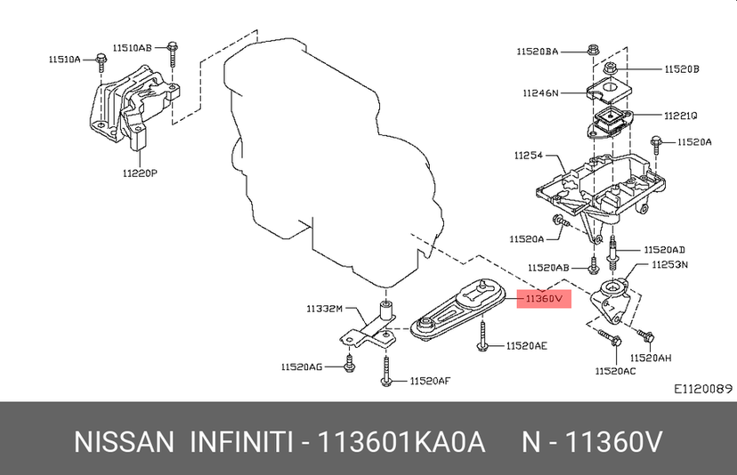 Engine mounting SYLPHY B17,PULSAR C12,JUKE F15 FR A/T