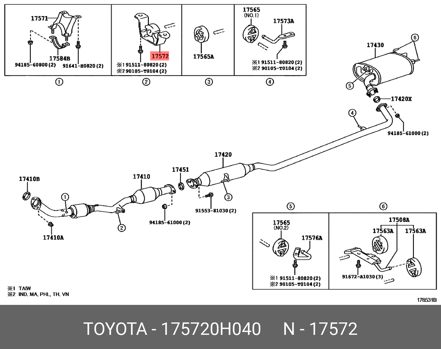 RBI EXHAUST SUPPORT RUBBER17572-0H040 CAMRY RBI