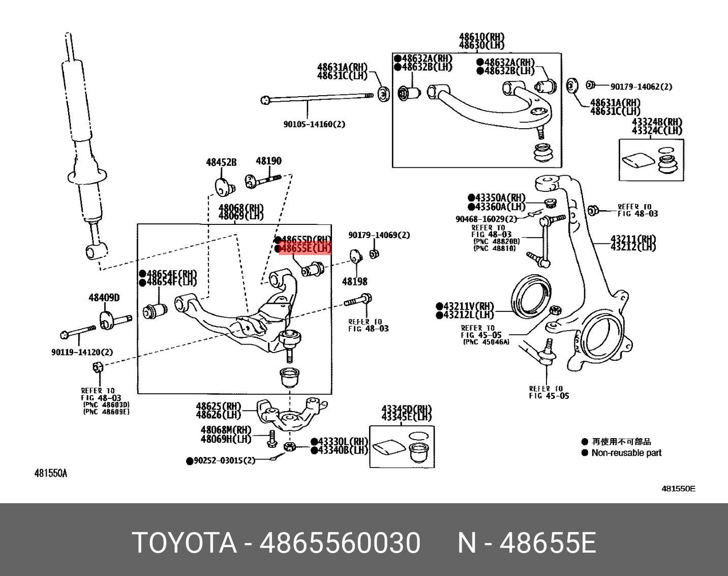 LOWER ARM BUSH 48655-60030 BIG PRADO120 GENUINE
